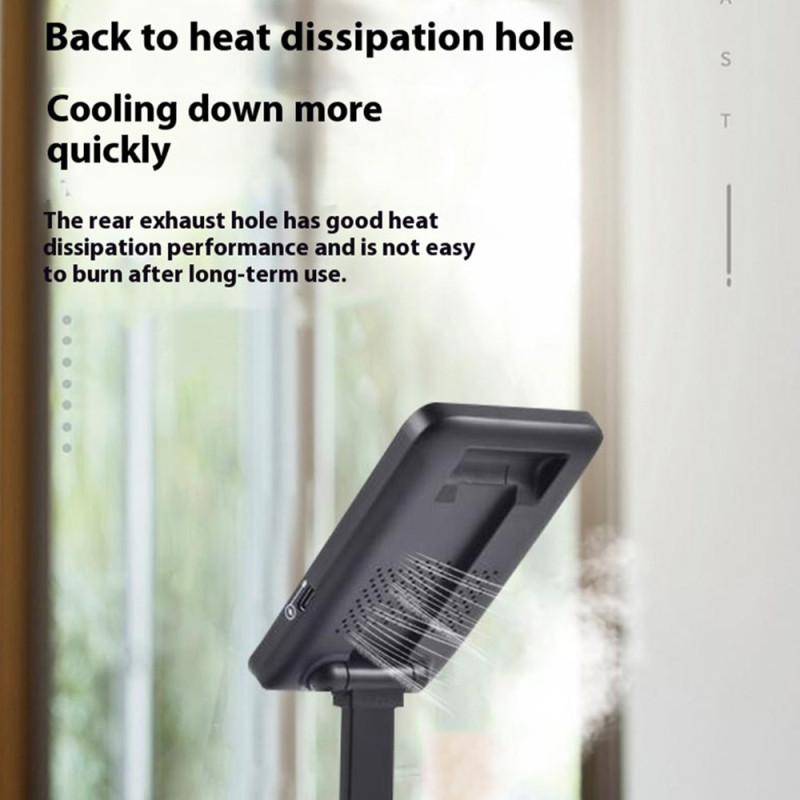 Support ajustable 3-en-1 alliant enceinte Bluetooth 5.1, chargeur sans fil et station d'accueil ergonomique. Design pliable avec rotation 360°, haut-parleurs double aimant 5W et batterie intégrée de 1500mAh. Parfait pour le bureau ou les déplacements.