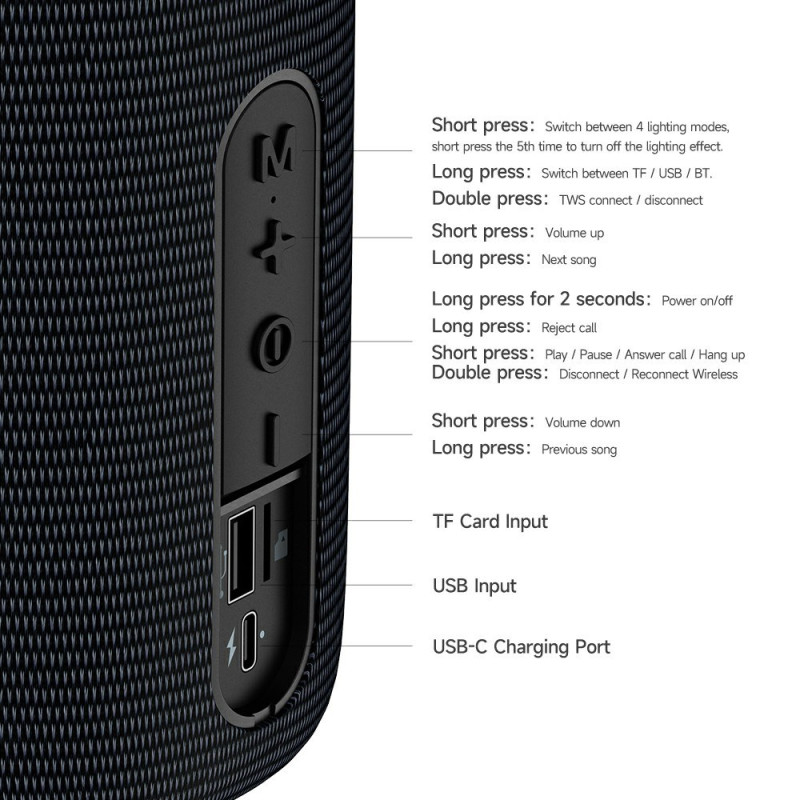 Découvrez l'enceinte portable MCDODO BS-1410 : un son puissant avec deux haut-parleurs de 5W, un spectacle lumineux coloré captivant et une résistance à l'eau IPX4. Avec sa sangle de transport pratique et 10 heures d'autonomie, elle vous accompagne partout pour des moments musicaux inoubliables.