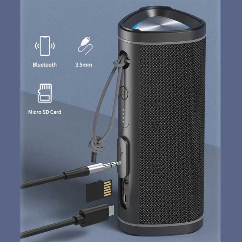 Genießen Sie mit dem Bluetooth-Lautsprecher AWEI Y331 einen kraftvollen Stereosound. Er ist wasserdicht nach IPX6 und bietet bis zu 10 Stunden Akkulaufzeit, Freisprechen mit geräuschunterdrückendem HD-Mikrofon und unterstützt mehrere Wiedergabemodi (Bluetooth, TF-Karte, AUX).
