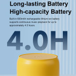 Der EWA-Lautsprecher kombiniert ein ultrakompaktes Format mit einem durchdachten Metalldesign, um einen überraschend kraftvollen Klang zu liefern. Dank Bluetooth 5.0 ist die Verbindung stabil und energiesparend, sodass Sie bis zu 10 Meter weit flüssig hören können. Der 3-W-Neodym-Treiber und der nach unten gerichtete Passivradiator verstärken die Bässe für eine klare, satte und resonante Wiedergabe. Trotz seiner geringen Größe liefert er ein volles und ausgewogenes Volumen. Dank der TWS-Funktion können zwei Lautsprecher miteinander verbunden werden, um echten Stereosound zu genießen. Die Akkulaufzeit beträgt bis zu vier Stunden bei mäßiger Lautstärke.