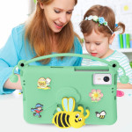 Schutzhülle für Tablets im verspielten Bienendesign, perfekt für Kinder. Ausgestattet mit einem praktischen Tragegriff und einem integrierten Klappständer für freihändiges Betrachten. Hergestellt aus dickem, stoßfestem Material für optimalen Schutz vor Stürzen.