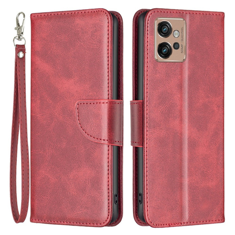 Diese stilvolle Lederhülle mit Riemen und schrägem Verschluss ist ideal für das Moto G32.