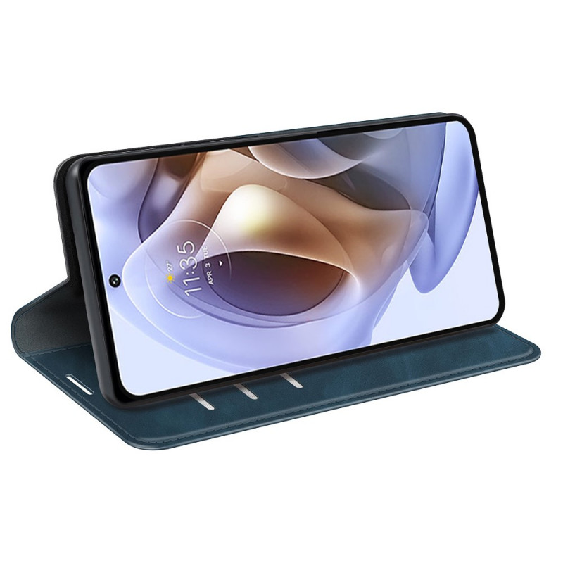 Schützen Sie Ihr Moto G41 / G31 auf schlanke und widerstandsfähige Weise mit dieser Hülle mit seidenweicher Lederoptik im Flip Cover-Stil (mit integriertem Verschluss).