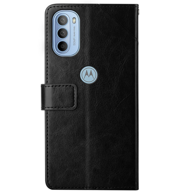 Die Style Lederhülle Geo Y Design mit Riemen bietet einen umfassenden und multifunktionalen Schutz für das Moto G41 / G31.