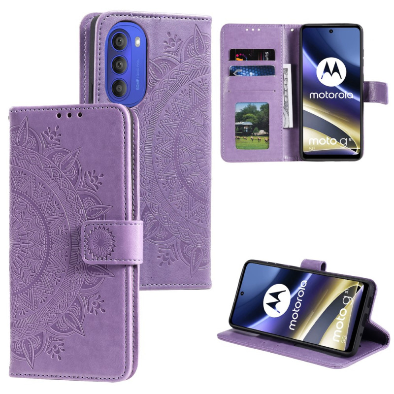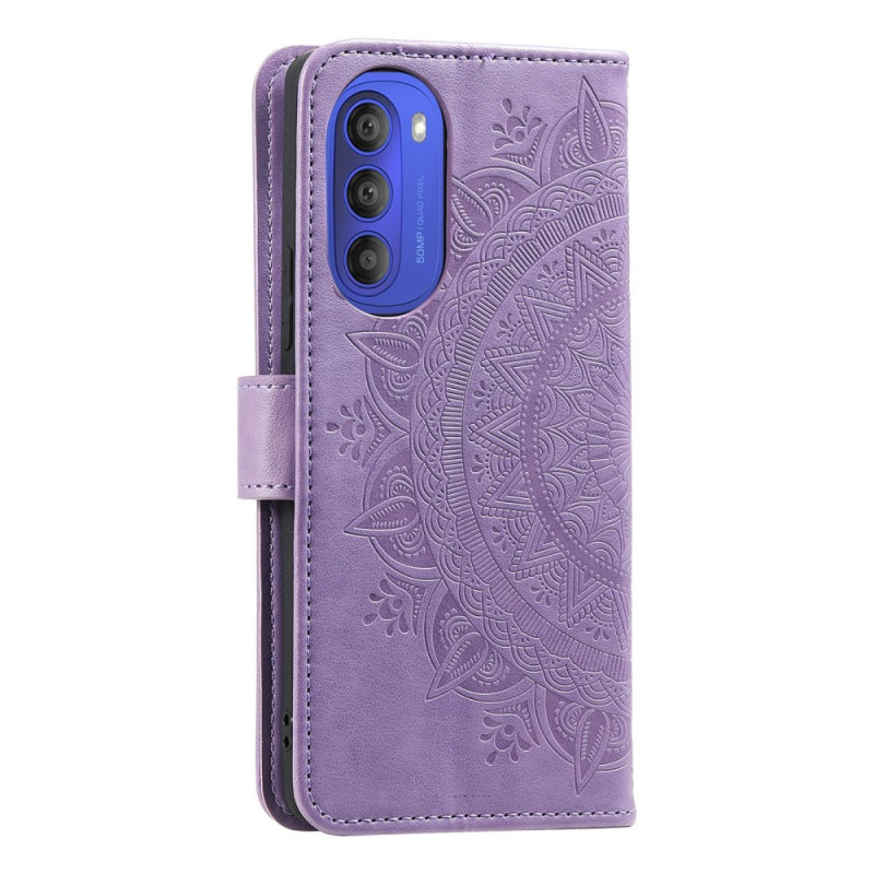 Diese Tasche mit Riemen im Sonnen-Mandala-Design schützt Ihr Moto G51 5G effektiv.