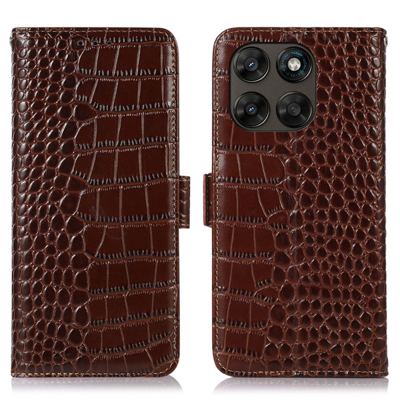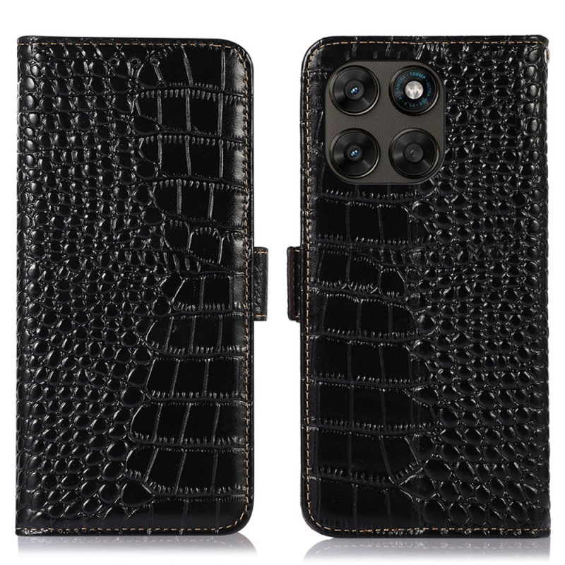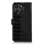Schützen Sie Ihr Motorola Moto G77 5G / G67 5G mit dieser luxuriösen schwarzen Krokodil-Ledertasche im Wallet-Stil.