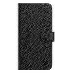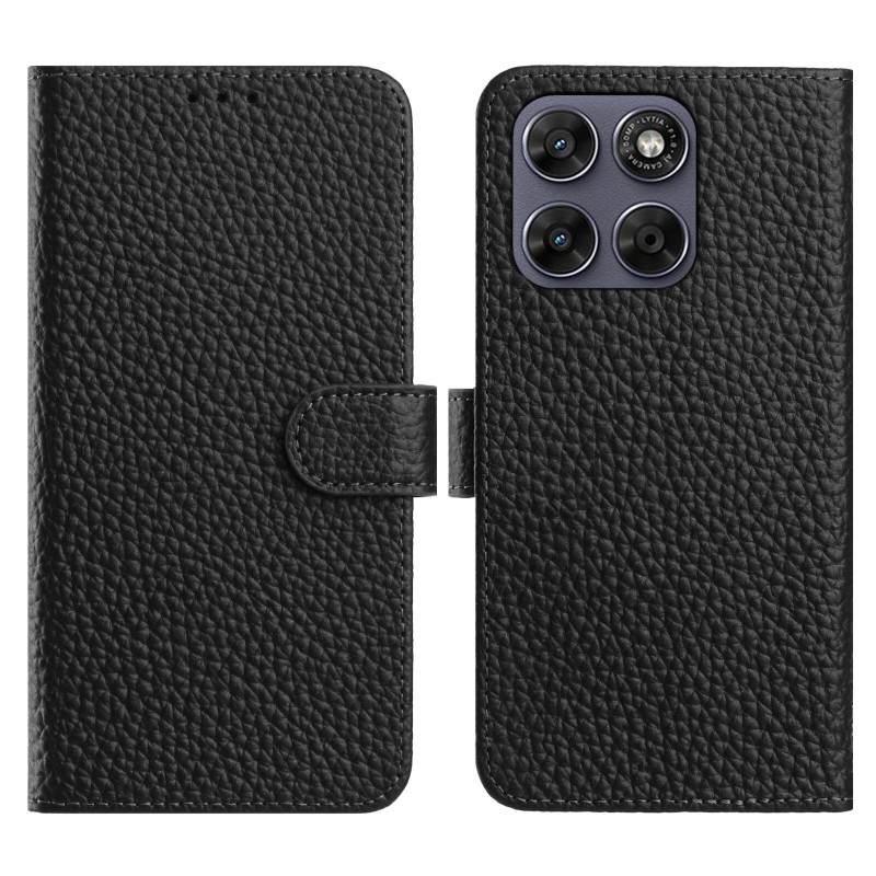 Schützen Sie Ihr Motorola Moto G77 5G / G67 5G mit dieser eleganten Brieftasche aus echtem Leder in Litschi-Schwarz.