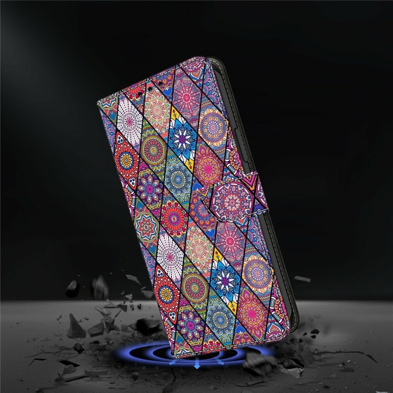 Verleihen Sie Ihrem Motorola Moto G77 5G / G67 5G mit dieser Patchwork-Tasche einen eleganten und intensiven Touch.