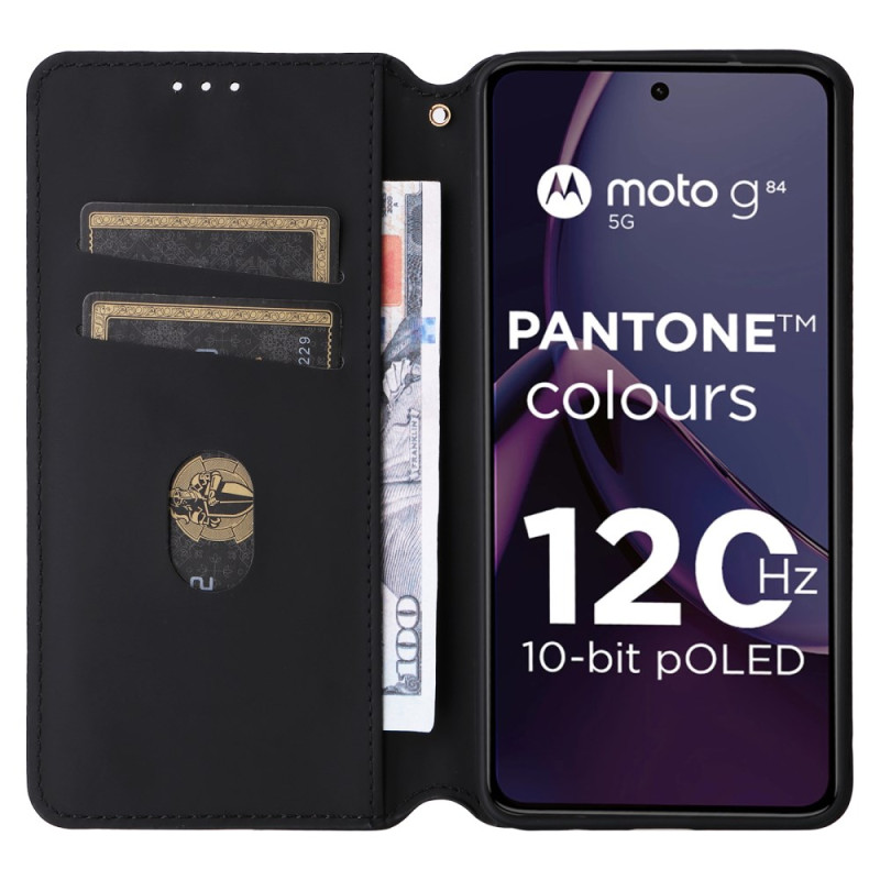 Entdecken Sie unser hochwertiges Flip Cover Losanges 3D für Motorola Moto G84 5G, das mit einem Magnetverschluss ausgestattet ist.