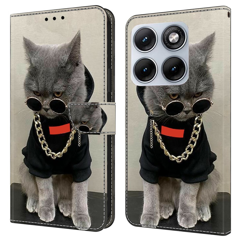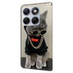 Schützen Sie Ihr Motorola Edge 70 Fusion 5G mit dieser originell gestalteten Brieftasche mit Katzenmotiv, Brille und Halskette.