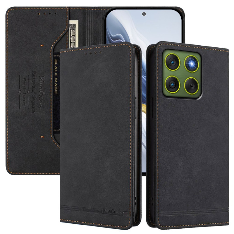 Étui portefeuille élégant en cuir PU pour Motorola Edge 70 5G. Protégez vos cartes bancaires grâce à la technologie anti-RFID intégrée. Design pratique avec support intégré pour visionnage mains libres et compartiments pour cartes et espèces.