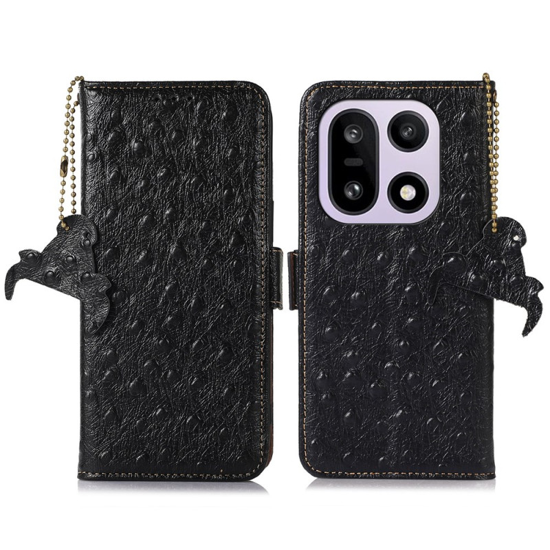 Entdecken Sie diese elegante Brieftasche aus echtem Rindsleder mit Straußenstruktur für Ihr OnePlus 15 5G. Ausgestattet mit der RFID-Sperrtechnologie schützt es Ihre Bankkarten und bietet mit 2 Kartenfächern, 1 Fotofach und 1 Bargeldfach eine praktische Aufbewahrungsmöglichkeit.
