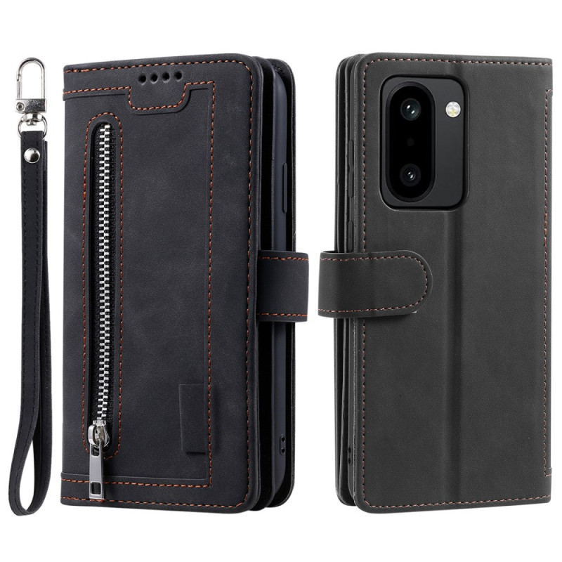 Schützen Sie Ihr OnePlus 15R 5G stilvoll mit dieser multifunktionalen Brieftasche. Mit 9 Kartenfächern, einem sicheren Reißverschlussfach und einer praktischen Handschlaufe vereint es Eleganz und Alltagstauglichkeit.