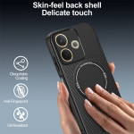 Militärischer Hybridschutz aus TPU + PC mit Kohlefasertextur. Integrierte, einziehbare Halterung für freihändiges Betrachten. Kompatibel mit magnetischen Autohalterungen. Erhöhter Schutz für Bildschirm und Kamera. Anti-Fingerabdruck-Beschichtung.