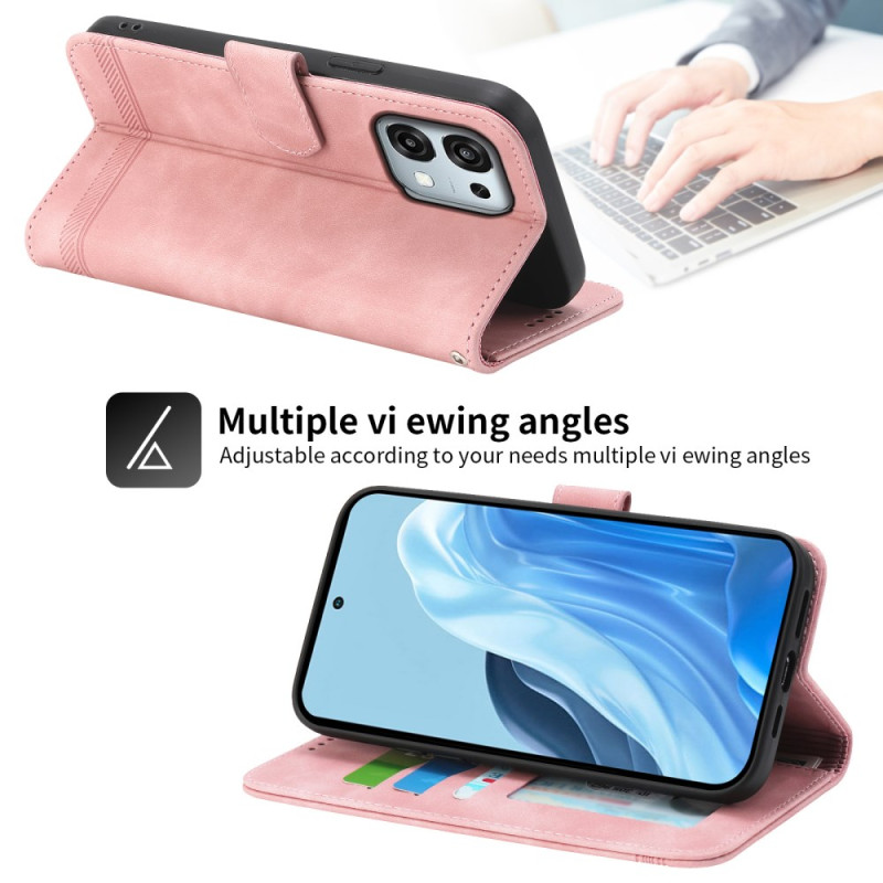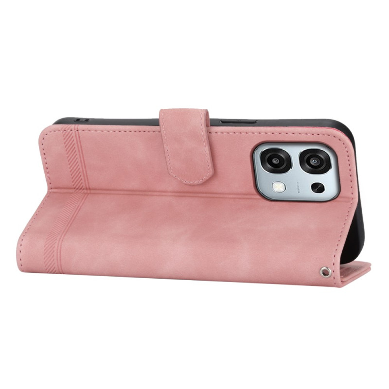 Elegantes Wallet-Etui mit raffiniertem Liniendruck. Ausgestattet mit einer flexiblen TPU-Innenschale, Fächern für Karten und Bargeld, verstellbarer Standfunktion und sicherem Magnetverschluss. Beinhaltet eine praktische Handschlaufe.