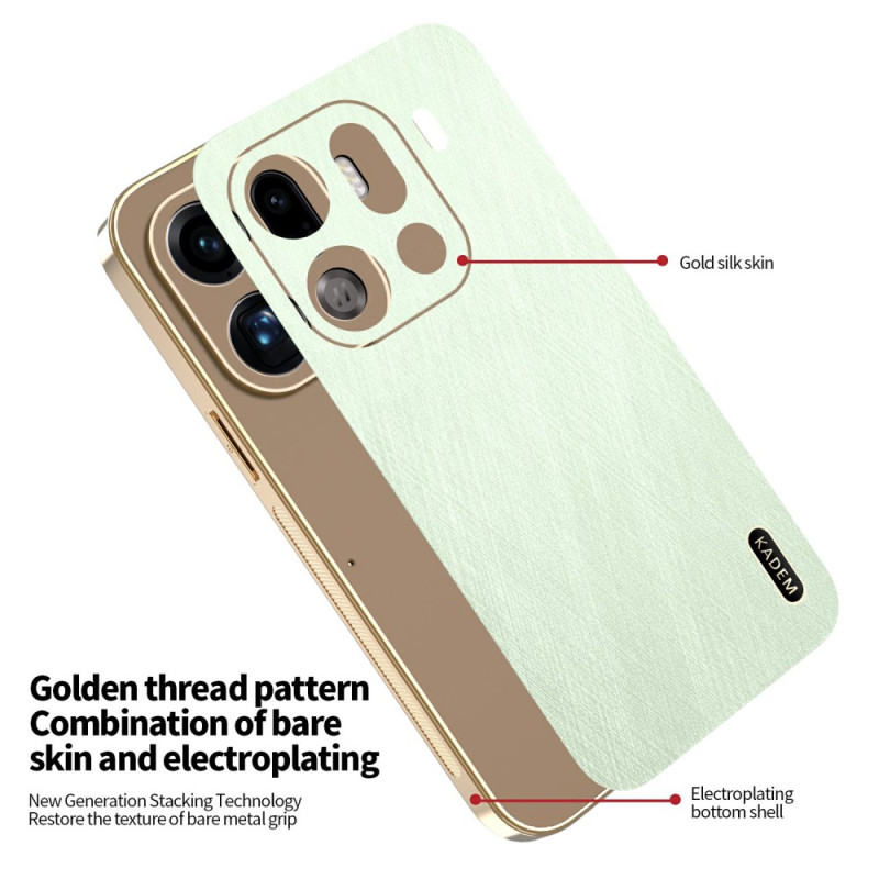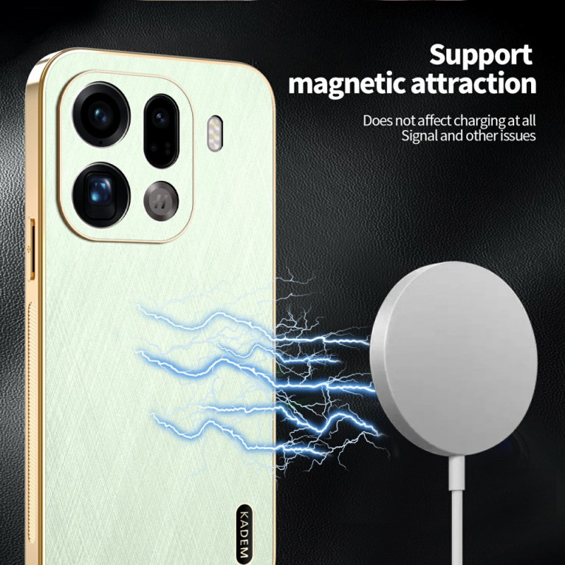 Schützen Sie Ihr Oppo Find X9 Pro 5G mit dieser eleganten KADEM Hülle. Das Design aus zwei Materialien, PU und TPU, bietet eine raffinierte, seidige Textur, ein anspruchsvolles elektrolytisches Finish und einen umfassenden Schutz vor alltäglichen Stößen und Kratzern.