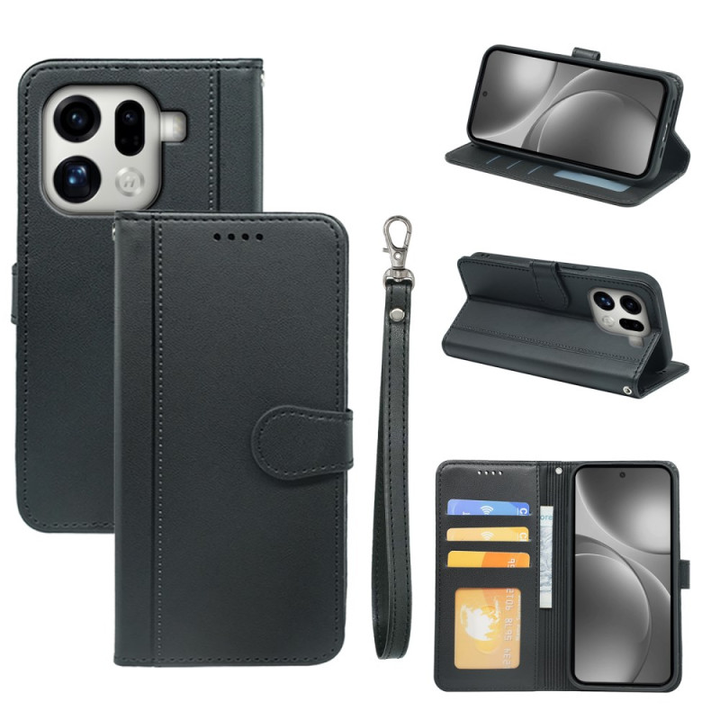 Schützen Sie Ihr Oppo Find X9 Pro 5G stilvoll mit dieser multifunktionalen Brieftasche. Mit Karten- und Bargeldfächern, einem sicheren Magnetverschluss und einer abnehmbaren Handschlaufe ist sie praktisch und stilvoll für den Alltag.