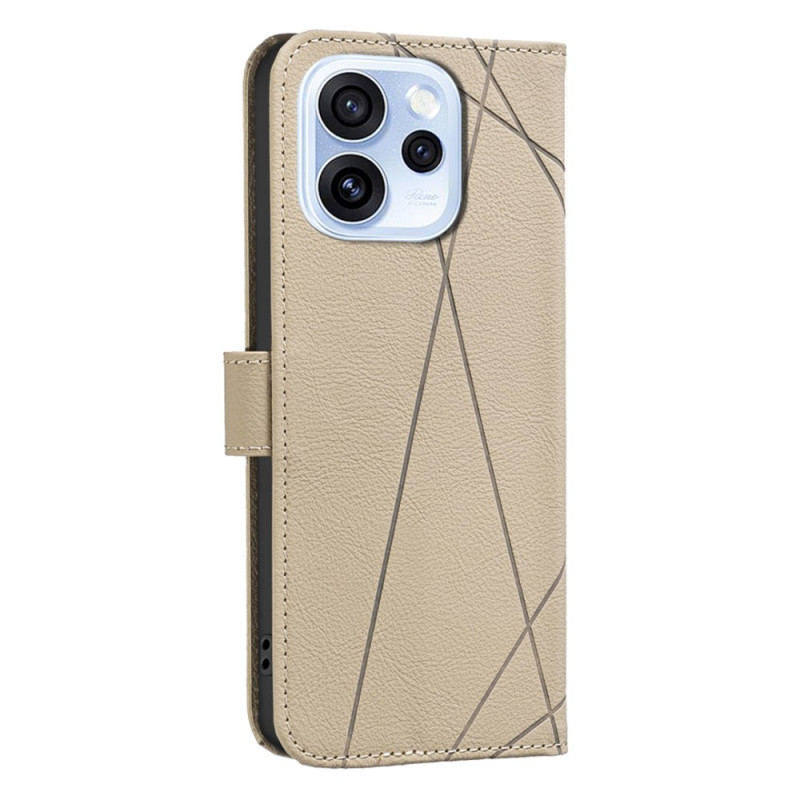 Schützen Sie Ihr Oppo Reno 15 F 5G mit dieser eleganten Brieftasche. Modernes geometrisches Design, manipulationssichere RFID-Sperre, 3 Kartenfächer und Geldscheinfach. Integrierter Klappständer für eine optimale freihändige Anzeige.