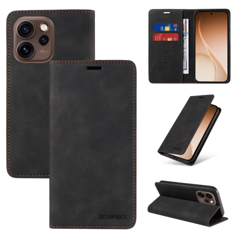 Brieftasche aus Leder für Oppo Reno 15 Pro 5G mit sicherem Magnetverschluss und RFID-Sperrtechnologie. Enthält 2 Kartenfächer, 1 Bargeldfach und eine verstellbare Halterung für eine optimale freihändige Anzeige.