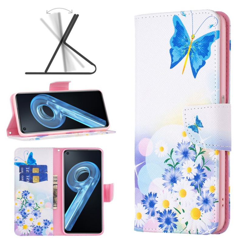 Wählen Sie diese mit Schmetterlingen verzierte Hülle, die Ihr Oppo A76 / Realme 9i fein absichert und mehrere Optionen bietet.