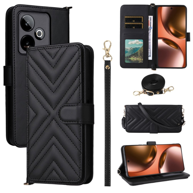 Elegante Brieftasche für Realme GT 7 5G mit verstellbarer Halterung, 6 Kartenfächern und sicherem Magnetverschluss. Kommt mit verstellbarem Schultergurt und abnehmbarer Handschlaufe für den vielseitigen Transport im Alltag.
