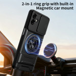Schützen Sie Ihr Samsung Galaxy A07 5G / 4G mit dieser innovativen magnetischen Schutzhülle. Mit einem um 360° drehbaren Stützring, einer faltbaren Halterung für freihändiges Betrachten und einem verschiebbaren Kameraschutz vereint sie Funktionalität und optimale Sicherheit.