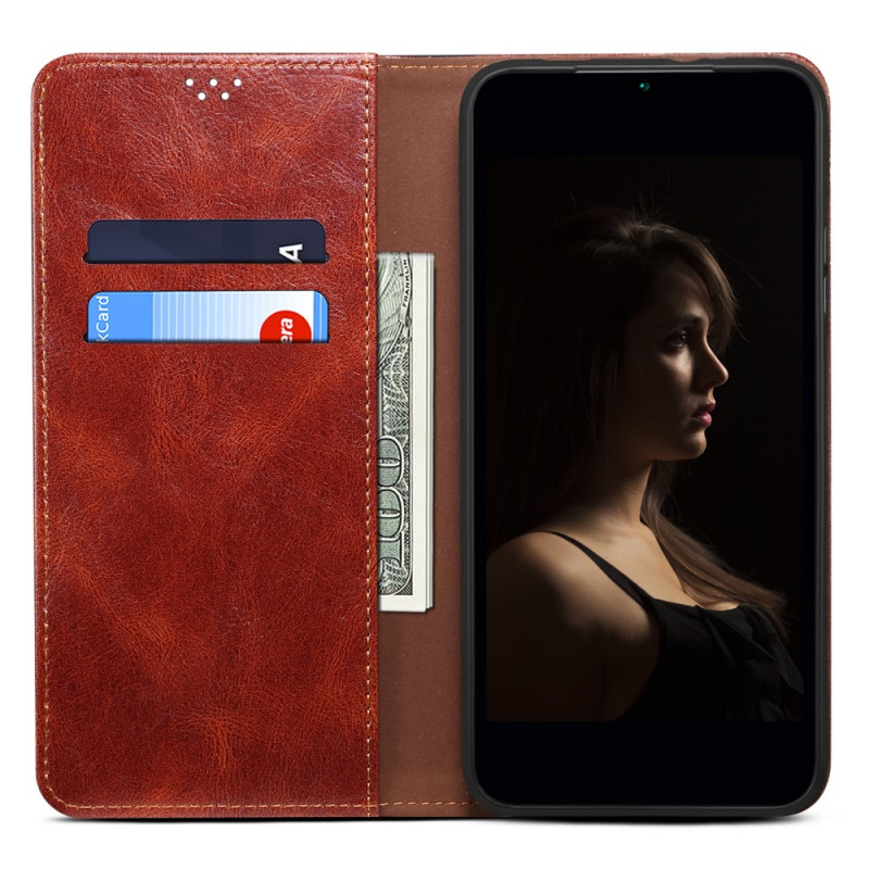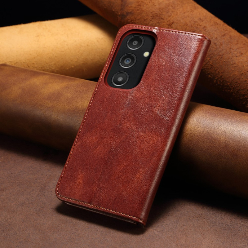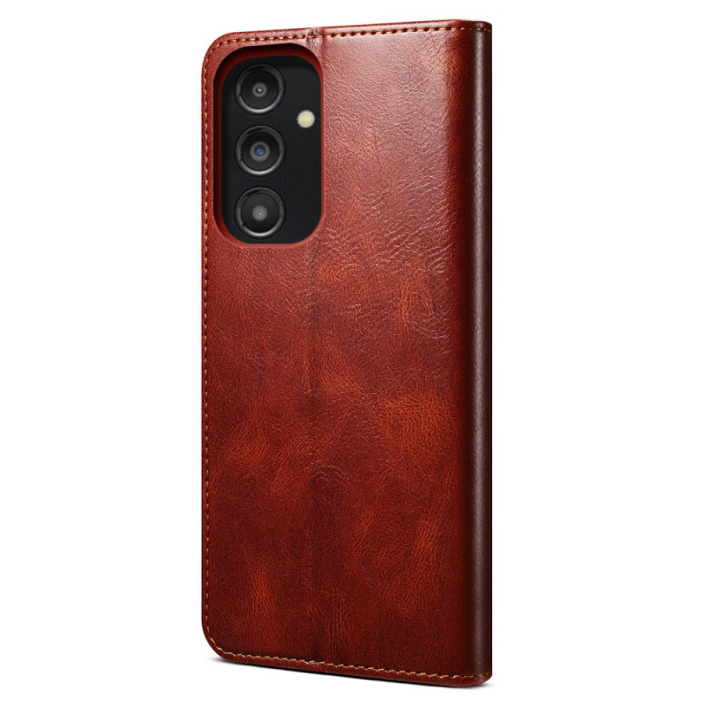 Das Flip Cover aus gewachstem Kunstleder sorgt dafür, dass das gesamte Samsung Galaxy A14 5G / A14 im Alltag geschützt ist.