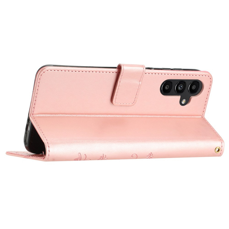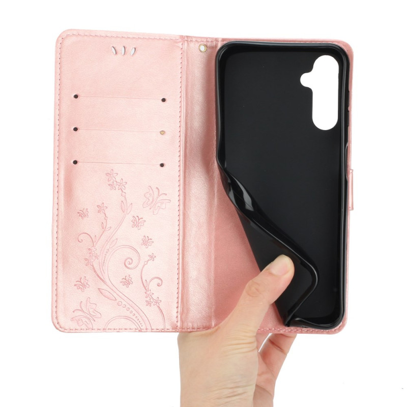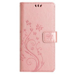 Samsung Galaxy A35 5G Tasche Schmetterlings- und Blumenmotiv mit Trageriemen