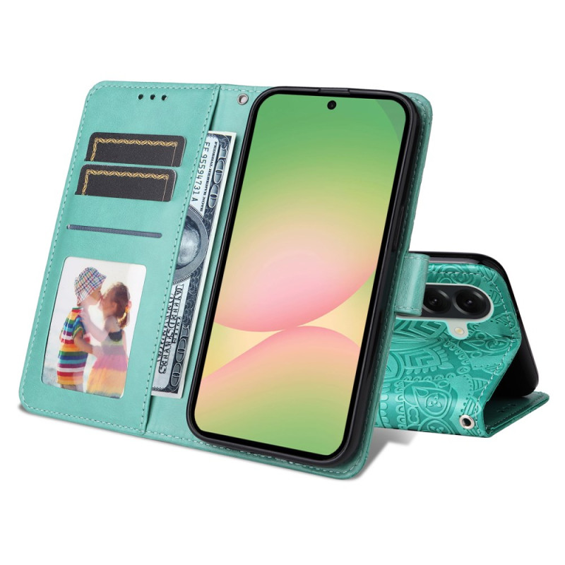 Protégez votre Samsung Galaxy A57 5G avec élégance grâce à cet étui portefeuille en cuir PU. Design raffiné avec motif tournesol en relief, fentes pour cartes intégrées et support de visionnage. Coque TPU résistante offrant une protection complète.