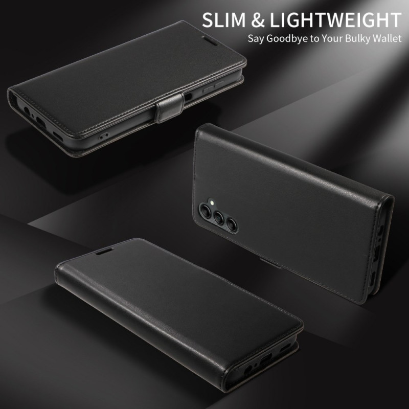 Schützen Sie Ihr Samsung Galaxy A57 5G stilvoll mit dieser multifunktionalen Brieftasche. Es verfügt über eine RFID-Sperre, um Ihre Bankkarten zu sichern, und vereint mit seinen drei Kartenfächern und der integrierten Freisprecheinrichtung Eleganz und Praktikabilität.
