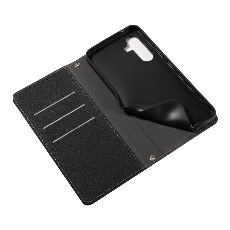 Entdecken Sie diese elegante Brieftasche für Samsung Galaxy A57 5G, die Stil und Schutz vereint. Ausgestattet mit einer raffinierten Litschi-Textur, Kartenfächern, einer praktischen Standfunktion und einer abnehmbaren Handschlaufe für den einfachen Transport im Alltag.
