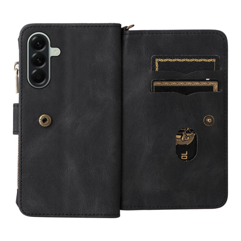 Schützen Sie Ihr Samsung Galaxy A57 5G stilvoll mit dieser multifunktionalen Brieftasche. Mit 15 Kartenfächern, einem sicheren Reißverschlussfach und einer abnehmbaren Handschlaufe vereint sie Eleganz und Alltagstauglichkeit.