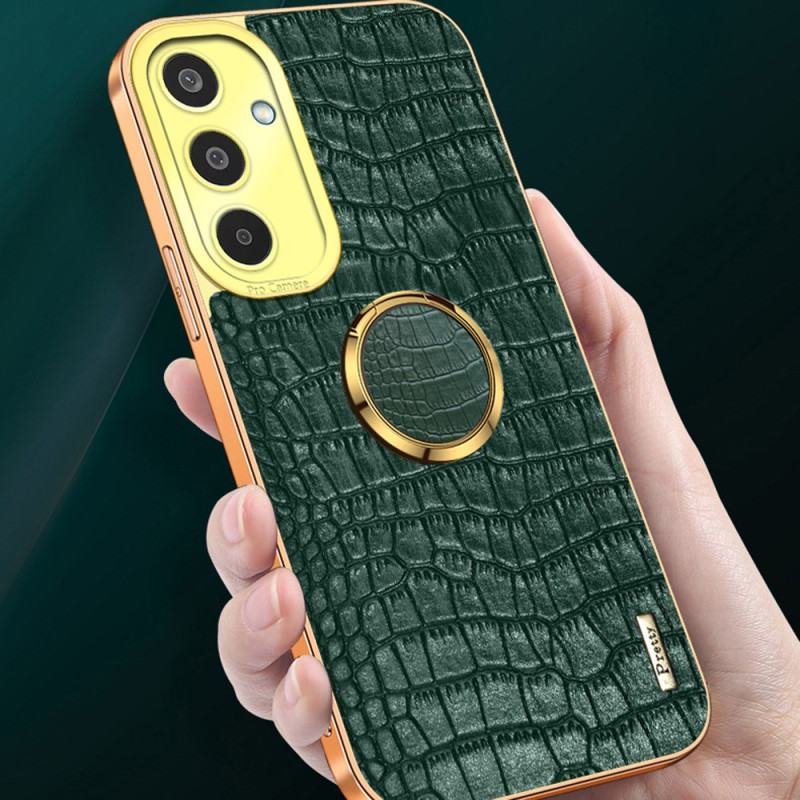 Entdecken Sie unsere elegante Hülle für das Samsung Galaxy M35 5G, die Stil und Funktionalität vereint. Ausgestattet mit einer praktischen Ringhalterung und einer luxuriösen Krokodil-Muster