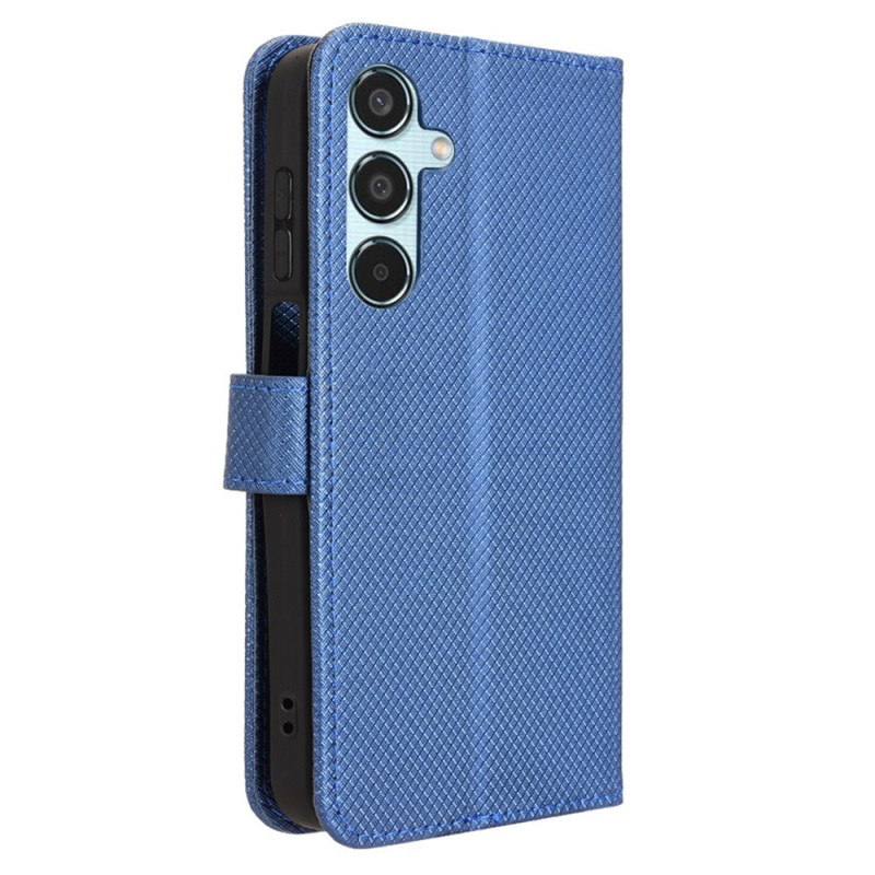 Entdecken Sie unsere elegante Hülle aus diamantstrukturiertem PU-Leder für das Samsung Galaxy M35 5G. Sie vereint Stil und Funktionalität und bietet umfassenden Schutz mit Kartenfächern, einem Fach für Geldscheine, einem Magnetverschluss und einem Klappständer.