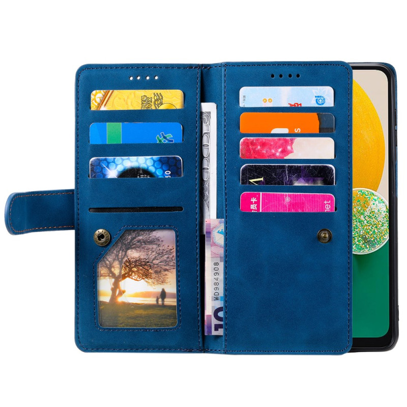 Entdecken Sie unser multifunktionales Etui für das Samsung Galaxy S25 5G. Sie ist aus hochwertigem PU-Leder gefertigt, bietet umfassenden Schutz und dient gleichzeitig als praktische Brieftasche mit 9 Kartenfächern und einem Reißverschluss.