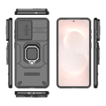 Protégez votre Samsung Galaxy S26 Plus 5G avec cette coque robuste alliant PC et TPU. Dotée d'une béquille rotative intégrée et d'un cache objectif mobile, elle offre une protection complète tout en permettant une utilisation mains libres optimale.