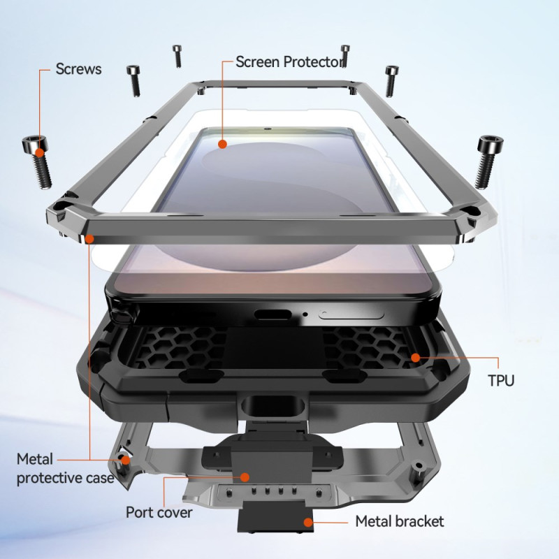 Protégez votre Samsung Galaxy S26 Ultra avec cette coque ultra-résistante R-JUST. Construction multicouche robuste offrant une protection complète contre les chutes, l'eau (IP54) et la poussière. Inclut un verre trempé intégré et un support mains-libres.