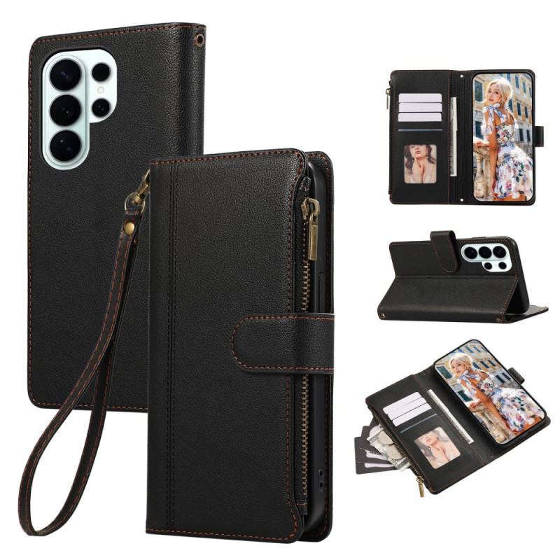 Découvrez l'étui portefeuille multifonction pour Samsung Galaxy S26 Ultra. Combinez protection et praticité avec ses multiples emplacements pour cartes, sa poche zippée sécurisée, son support intégré et sa dragonne amovible pour un usage quotidien simplifié.