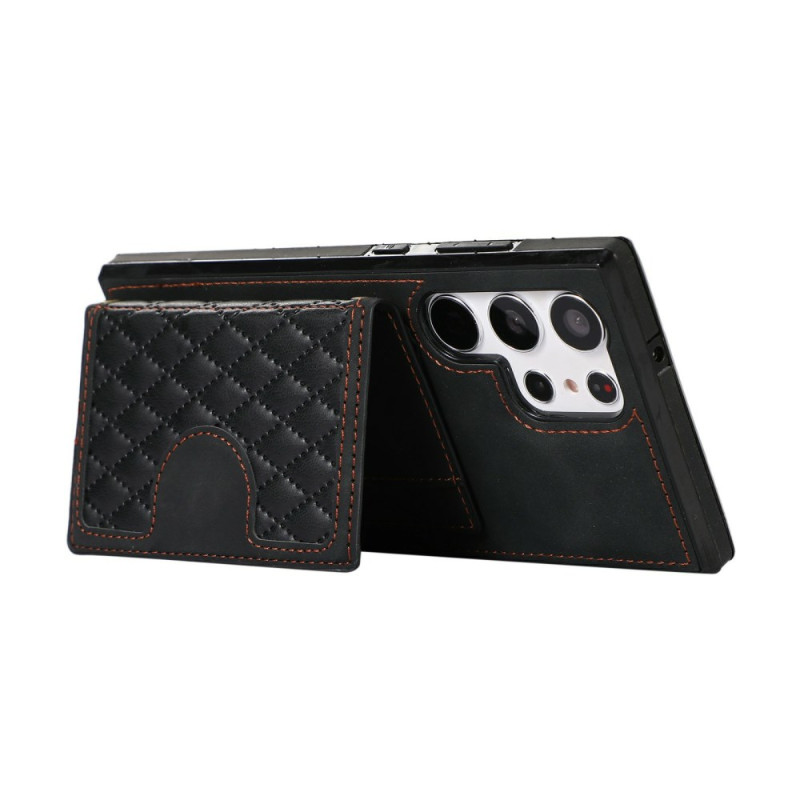 Protégez votre Samsung Galaxy S26 Ultra avec cette coque élégante en cuir PU et TPU. Design matelassé sophistiqué avec porte-cartes intégré et support ajustable. Fermeture magnétique sécurisée et protection complète contre les rayures.