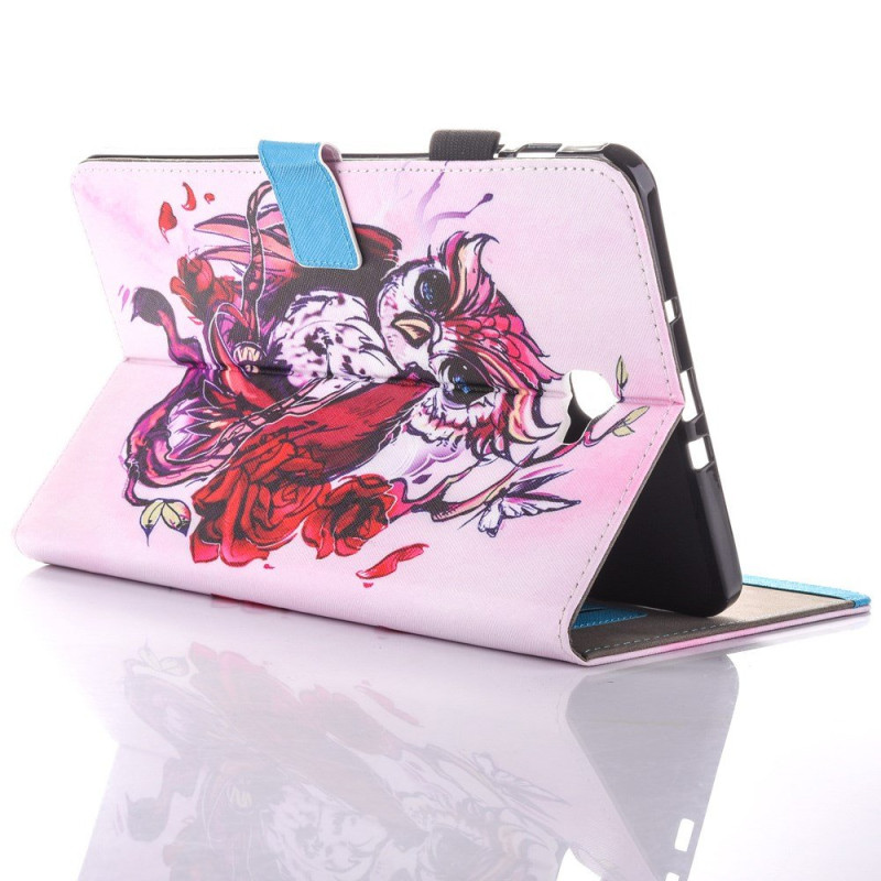Schützen Sie Ihren Tablet-PC stilvoll mit dieser Hülle mit Eulenmotiv und roten Rosen.