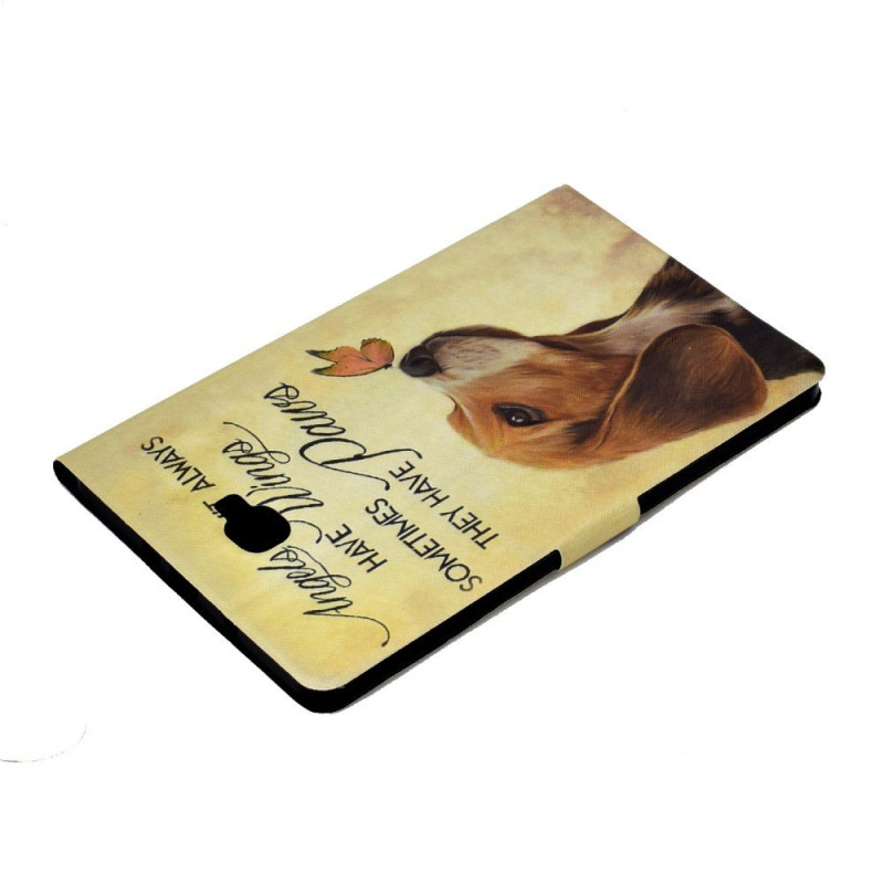 Schützen Sie Ihr Tablet stilvoll mit dieser fantasievollen Hülle mit Schmetterling und Hund.