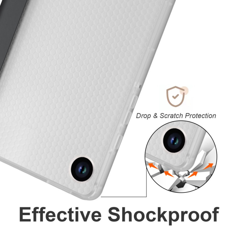 Mit einer transparenten Rückseite und einem dreifach faltbaren Cover bietet es auch einen Stiftschlitz. Beachten Sie, dass der Stift nicht im Lieferumfang enthalten ist.