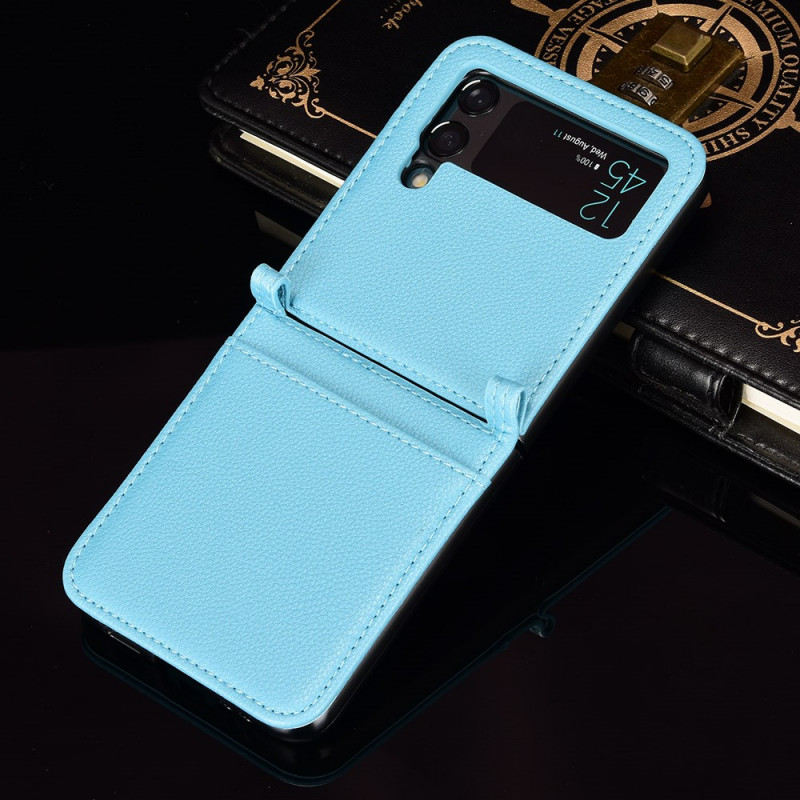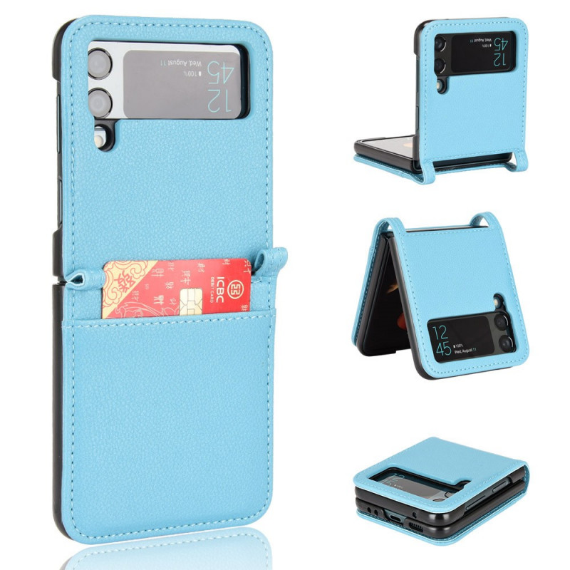 Eine tolle Hülle im Litschi-Leder-Stil mit Kartenhalter für das Samsung Galaxy Z Flip 3 5G, die sich durch Eleganz und Ergonomie auszeichnet.