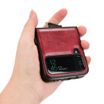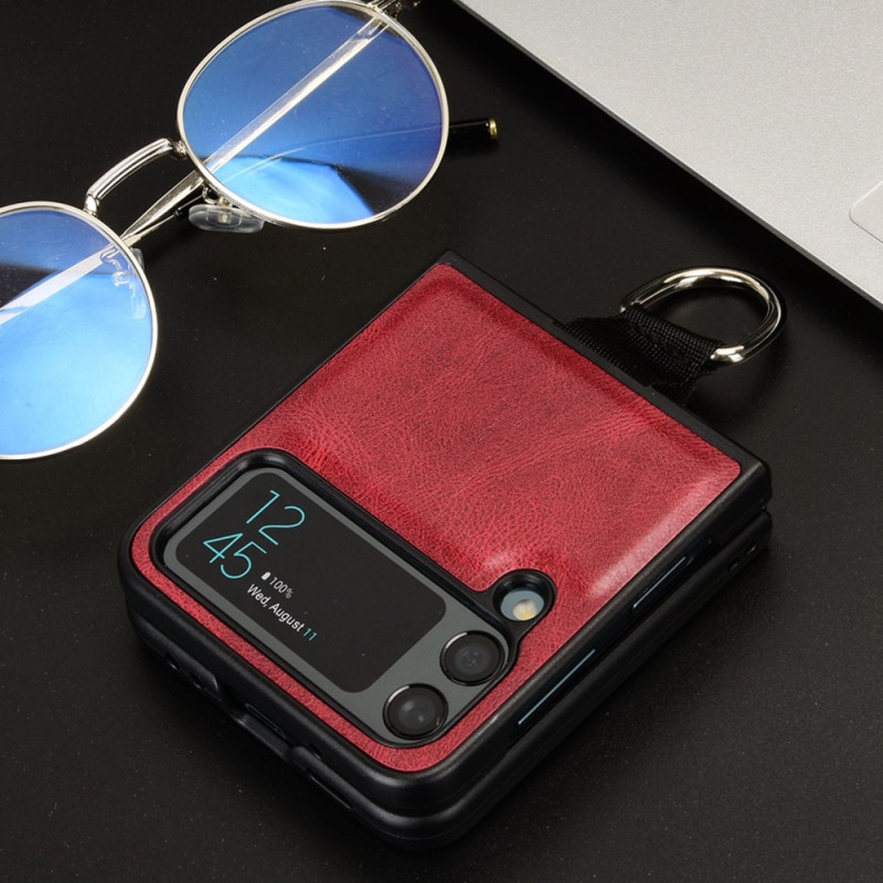 Verleihen Sie Ihrem Samsung Galaxy Z Flip 4 eine persönliche Note und sichern Sie es mit dieser Hülle im Retro-Lederstil, die mit einem praktischen Ring versehen ist.