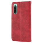 Das Sony Xperia 10 IV sieht mit diesem Flip Cover im Lederstil mit 3D-Muster, das mit einem Riemenkommt, fabelhaft aus.