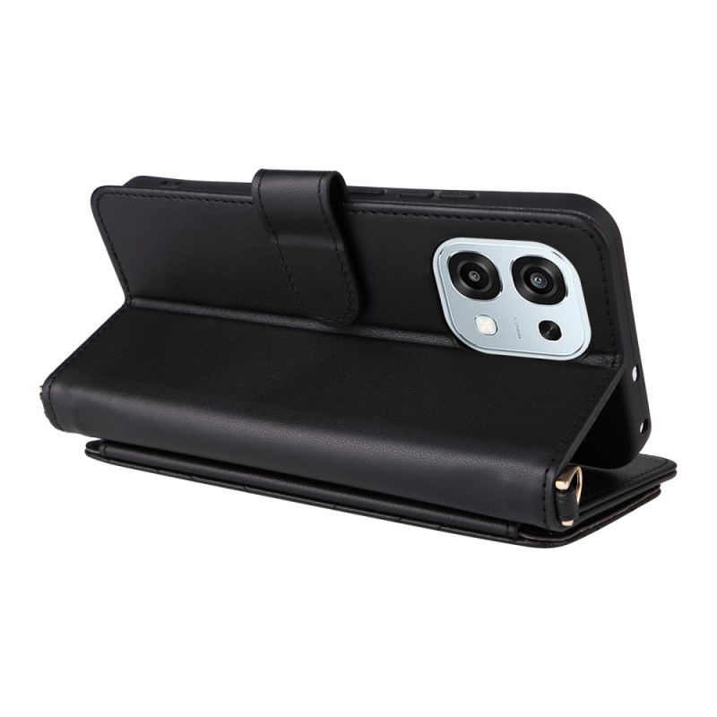 Étui portefeuille multifonction pour Oppo A6 Pro 5G. Design élégant avec support réglable, 6 emplacements pour cartes, fermeture magnétique sécurisée et bandoulière ajustable. Protection intégrale contre les chocs et rayures...