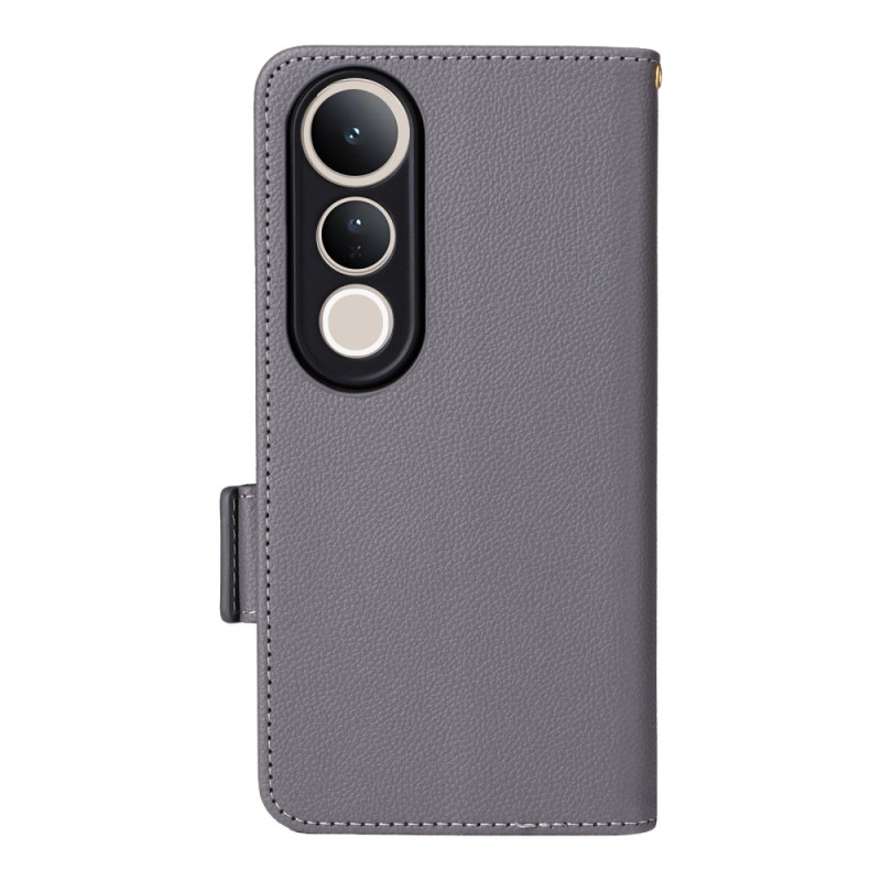 Elegante Brieftasche aus strukturiertem PU-Leder für das Vivo V50 Lite 4G/5G. Ausgestattet mit Kartenschlitzen, einer Freisprecheinrichtung und einem sicheren Magnetverschluss. Wird mit einer praktischen Handschlaufe für den einfachen Transport geliefert.