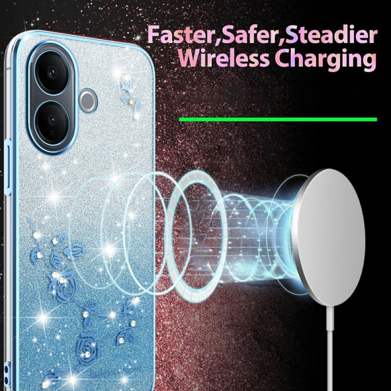 Schützen Sie Ihr Vivo V60 Lite stilvoll mit dieser eleganten Hülle, die mit einer ewigen Blume und glitzernden Strasssteinen verziert ist. Das abgestufte Glitzerdesign verleiht Ihrem Handy einen glamourösen und trendigen Touch und bietet gleichzeitig Schutz.