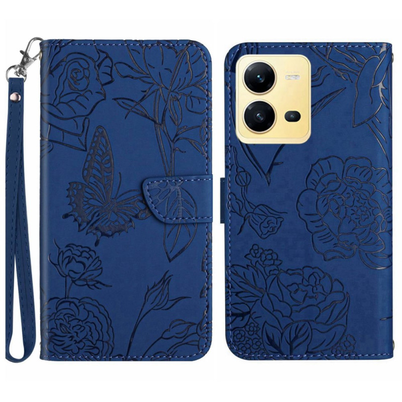 Entdecken Sie diese elegante Brieftaschenhülle mit eingraviertem Schmetterlings- und Blumenmuster auf der Klappe. Ausgestattet mit einem sicheren Magnetverschluss, mehreren Fächern für Karten und Bargeld und einem verstellbaren Klappständer für eine optimale Ansicht.