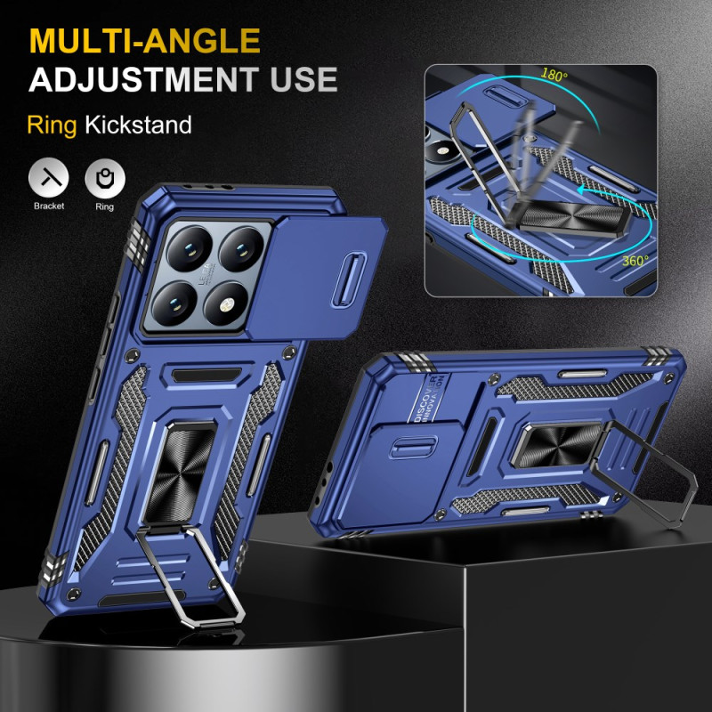 Entdecken Sie unsere innovative Hülle für das Xiaomi 14T. Mit einem verstellbaren Ständer und einem verschiebbaren Objektivschutz bietet sie maximalen Schutz vor Stößen und Stürzen.